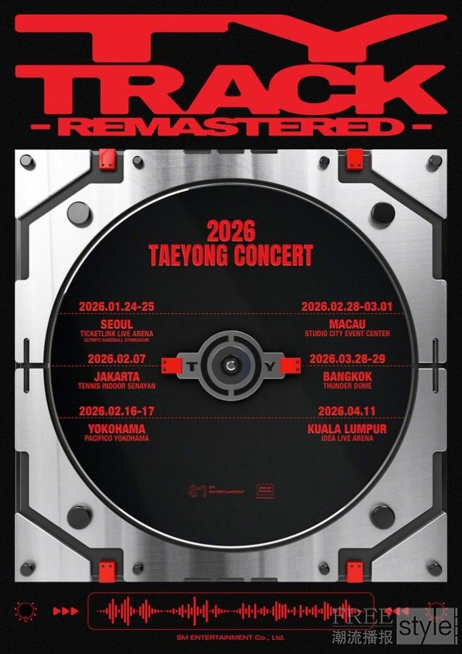 另一方面,《2026 TAEYONG CONCERT》还将展开全球巡演,除首尔外,行程包括2月7日雅加达、2月16–17日横滨、2月28日–3月1日中国澳门、3月28–29日曼谷、4月11日吉隆坡,共计6个城市、10场演出,持续点燃全球舞台热度。