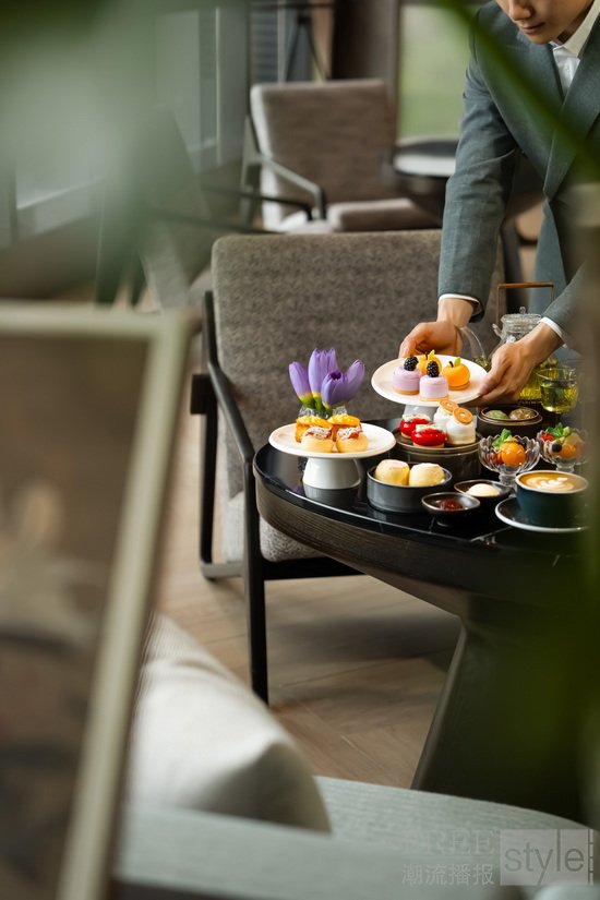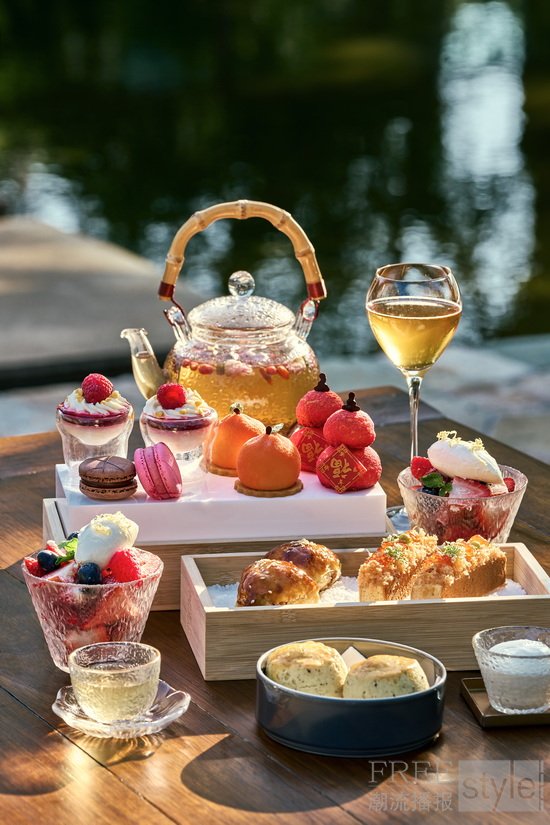 包含油浸番茄、土豆慕斯麻薯、松露饺等精致咸点,黑莓柚子慕斯、树莓芝士蛋糕等多款手作甜点,以及舒爽水果杯,咸点精巧,甜韵绵延,味觉层次渐次晕染,套餐价人民币258元即可于此慢品时光、细叙心意。