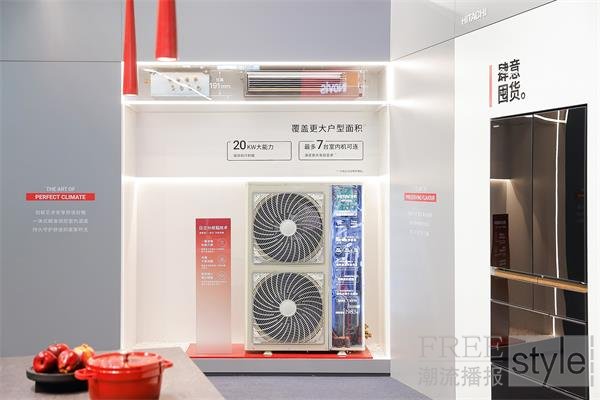 中央空调区域同样吸引众多观众驻足。全新升级的20KW大容量多联机首次亮相,该室外机最多可连接7台室内机,能够轻松覆盖多人家庭的空调需求。产品搭载涡旋式压缩机,在大幅提升制冷制热效率的同时,有效降低运行噪音。配合日立独特的分歧箱技术,实现冷媒的精准分配与独立控制,确保每个房间都能获得个性化的温度设定,真正实现“一体化”的舒适体验。