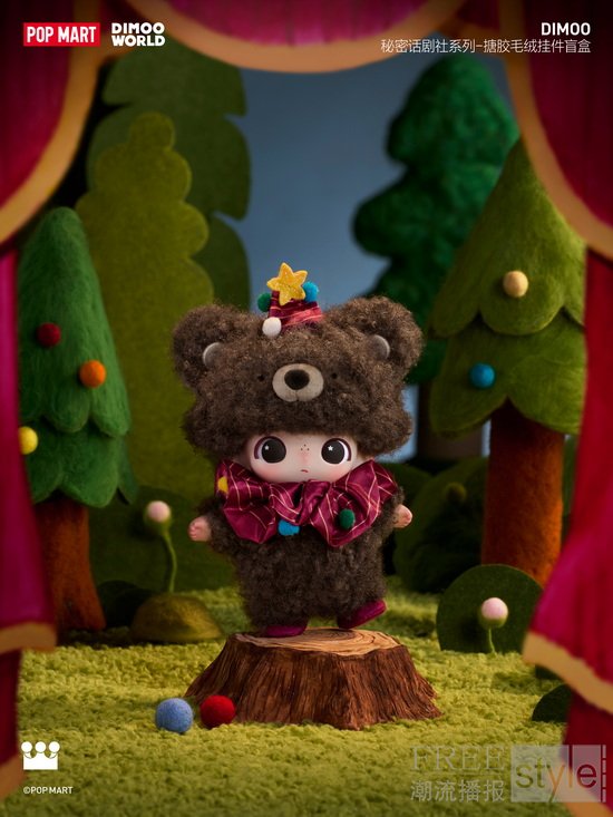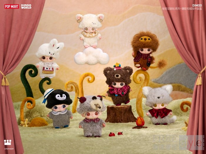 在云之国深处,每当夜幕降临,一座不定期开演的秘密话剧社悄然亮起灯光,DIMOO化身童话中的小动物,紧张地登上舞台,略显笨拙却真诚地演绎着属于自己的故事。泡泡玛特正式推出DIMOO秘密话剧社系列-搪胶毛绒挂件盲盒,通过七只性格迥异的小动物,讲述关于勇气、陪伴与想象的故事。