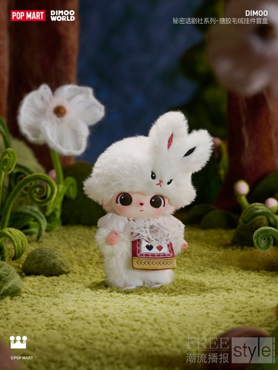 DIMOO 秘密话剧社系列-搪胶毛绒挂件盲盒、DIMOO秘密话剧社系列耳机包盲盒将于4月9日22:00登陆泡泡玛特指定线上渠道发售,4月10日登陆泡泡玛特指定线下门店发售。更多发售信息敬请关注泡泡玛特官方消息。