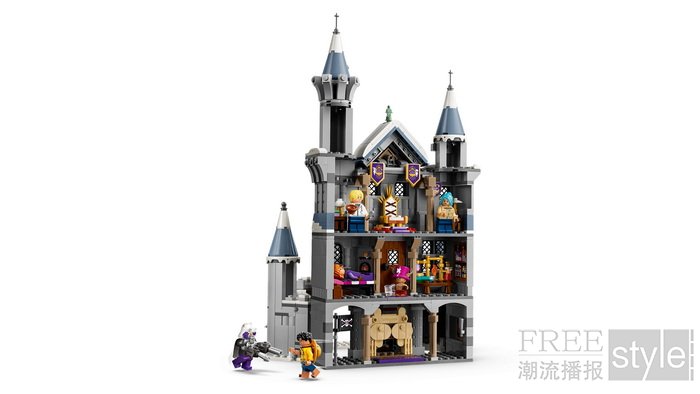 城堡内部以旗帜与隐藏细节精心装饰,创造沉浸式体验。这座多层城堡配有蒙奇·D·路飞、娜美、山治、多尼多尼·乔巴、薇薇以及瓦波尔等乐高小人仔。
