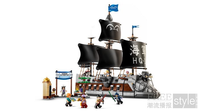 此套装共有超过 1,705 块乐高积木,包含 8 个乐高小人仔,包括索隆、乌索普、娜美、海军中将卡普以及Miss.全周日等,为玩家提供一段细节满满的沉浸式拼搭旅程。五面船帆与海军旗帜使其气势十足,无论是在东海的想象航程中,还是在乐高航海王系列的收藏中,都格外醒目。